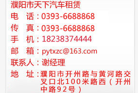 濮陽(yáng)租車(chē),濮陽(yáng)租車(chē)公司,濮陽(yáng)汽車(chē)租賃請(qǐng)到天下租車(chē)!電話(huà):0393-6688868/18238374444.濮陽(yáng)市天下汽車(chē)租賃是為了相應(yīng)政府關(guān)于大力發(fā)展第三產(chǎn)業(yè)的號(hào)召,于2010年經(jīng)濮陽(yáng)市工商局審核注冊(cè)的,集濮陽(yáng)汽車(chē)租賃、汽車(chē)運(yùn)動(dòng)服務(wù)、代駕、陪練、汽車(chē)信息咨詢(xún)服務(wù)、代理發(fā)布國(guó)內(nèi)廣告業(yè)務(wù)的商務(wù)服務(wù)型公司?! ?/p>